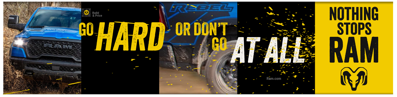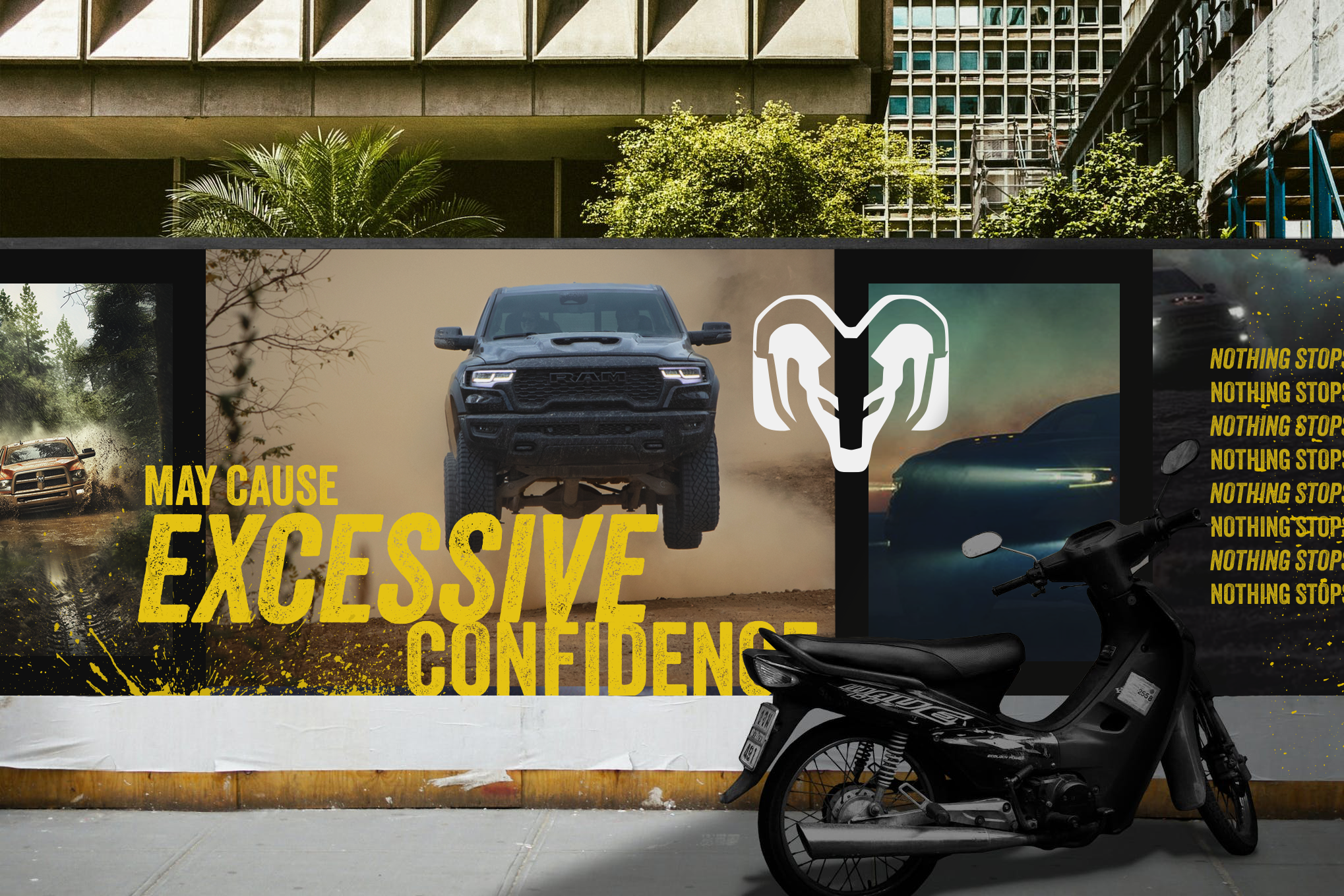My partner and I came up with the new tagline and logo/look for RAM Trucks. Though rounds of research, creative explorations, and hundreds of taglines presented ‘Nothing Stops Ram’ came out on top. There were multiple briefs for multiple projects needing this refresh so we were driving the truck as we were designing it. Owning our ‘Stinger Yellow’, standing out amongst our competitors and forcing people to stop and look/watch/consume. A Ram (the animal) does not back down from a fight and will not be stopped once started. And neither can Ram. The HEMI is back. And Ram is back in Nascar (which is a huge deal). So why not start there? Right on the tracks.